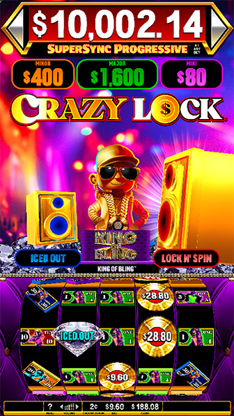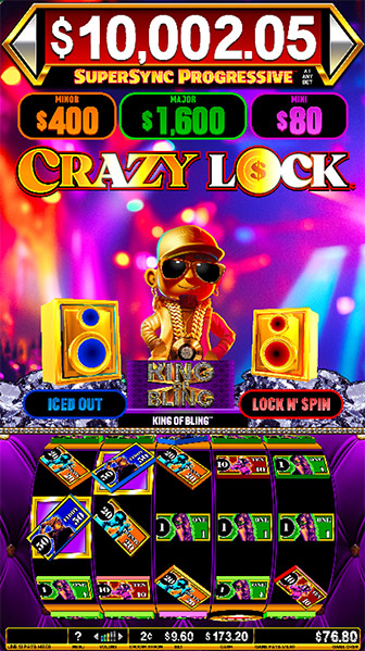 Lock in YOUR cash with Crazy Lock King of Bling™. Incredible Technologies’ latest slot theme brings the party to the slot floor. 25 Lines are filled with dollar bill symbols, complete with IT’s Angle Pay™ where angled symbols pay for even more line win potential. Keep your eyes peeled for a little boost from the house DJ, the King of Bling himself!